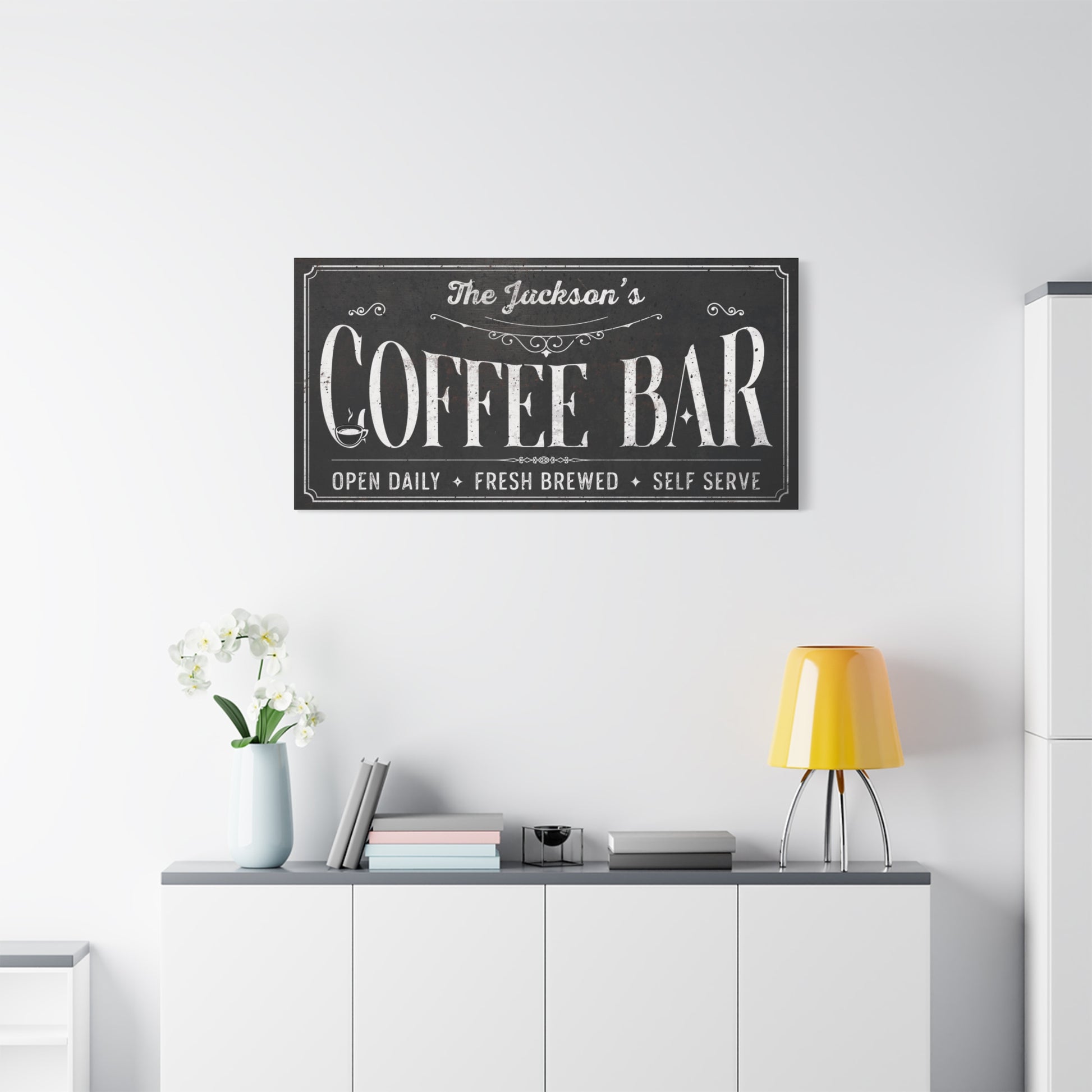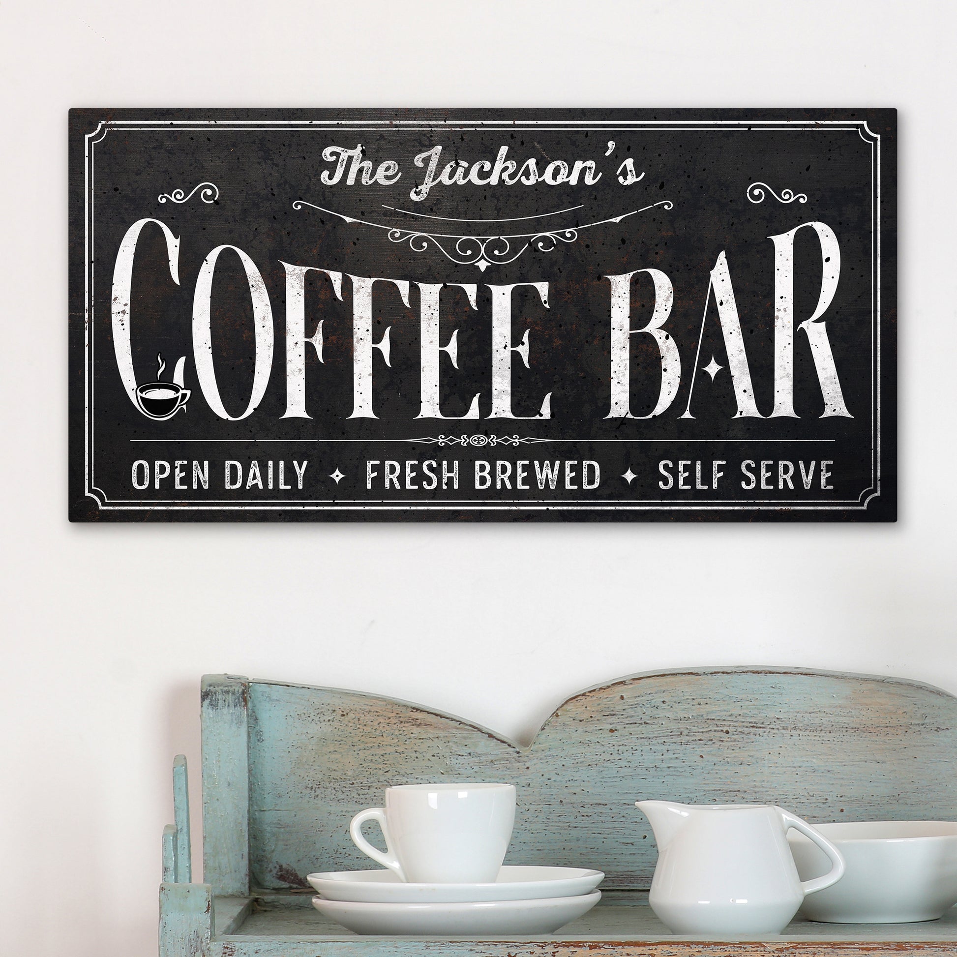 Custom Coffee Bar Sign - Personalized Rustic Vintage Coffee Shop Wall Art with Family Name | Modern Farmhouse Kitchen Coffee Station Decor | Espresso Cafe Sign for Home or Business