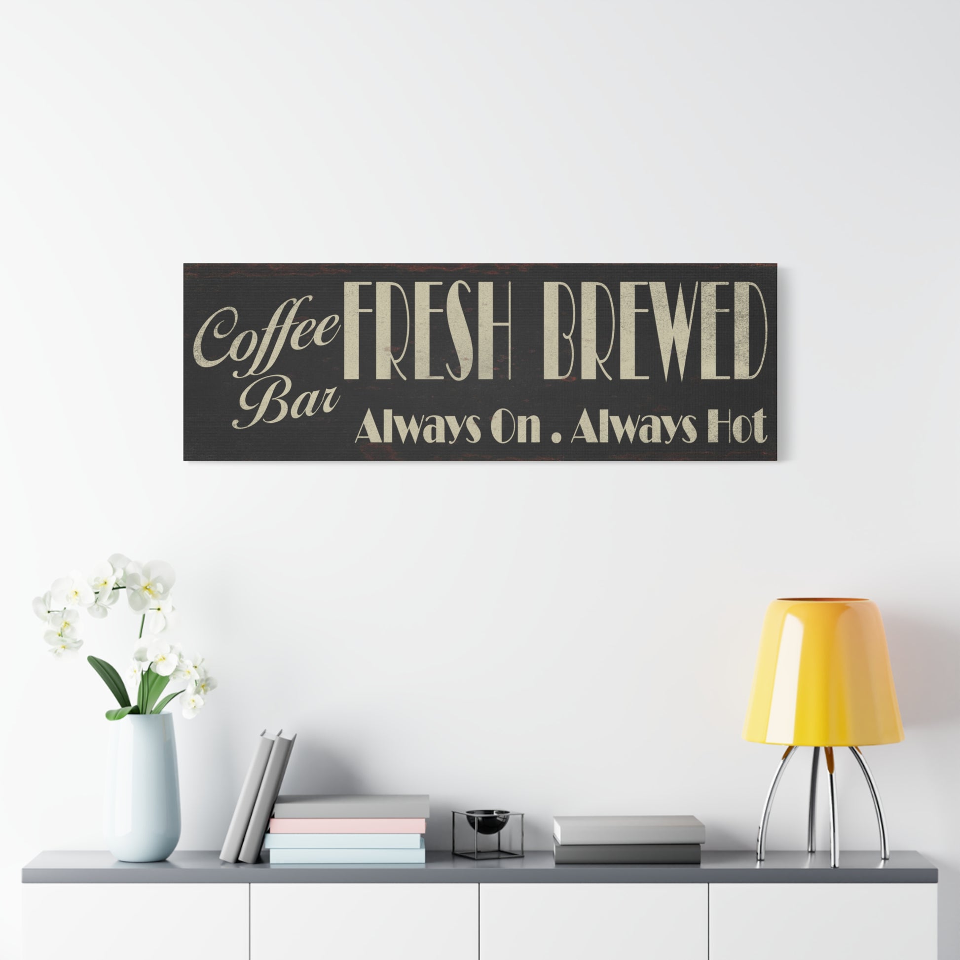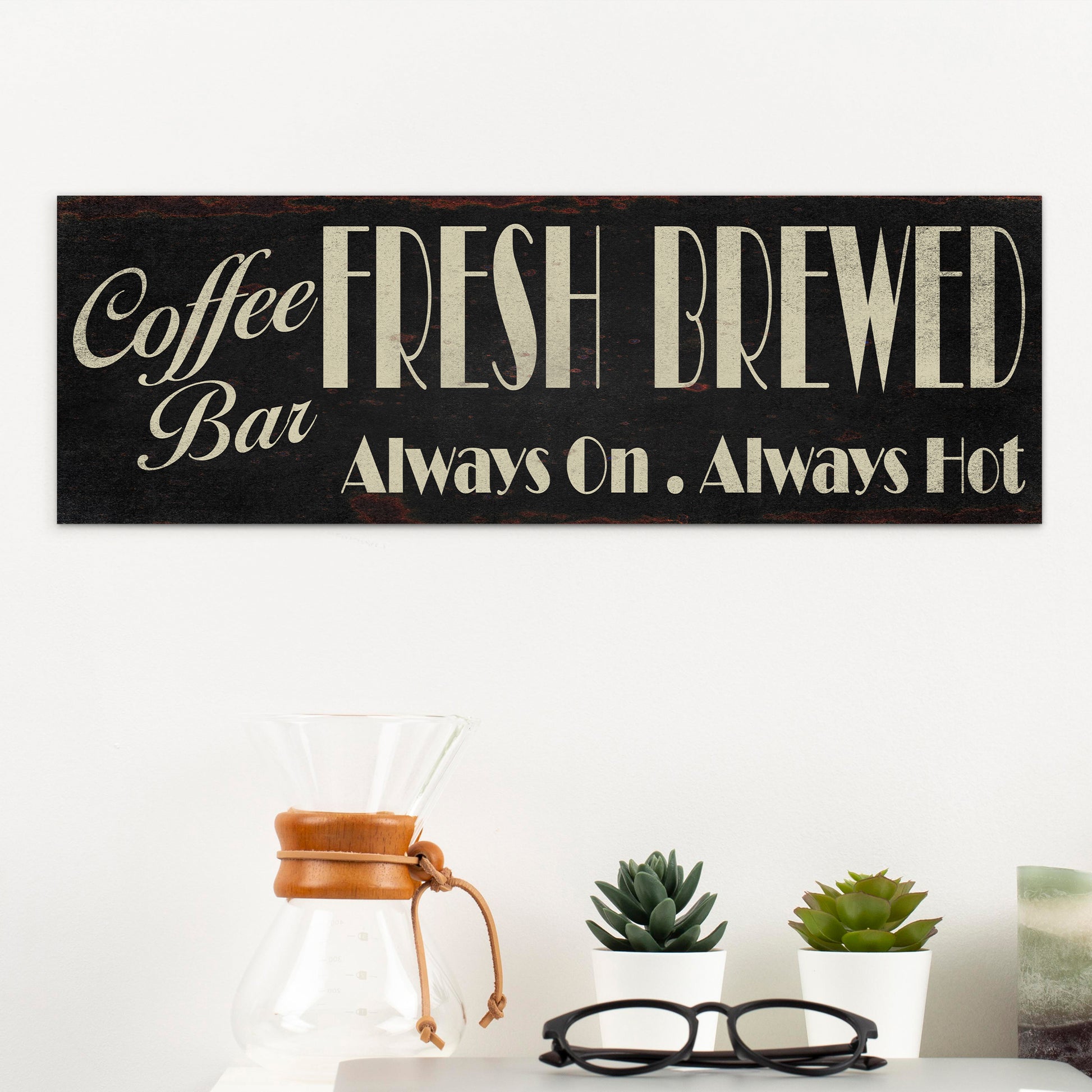 Custom Fresh Brewed Coffee Bar Sign - Personalized Rustic Vintage Style Coffee Wall Sign for Kitchen, Cafe, Office, or Home Bar