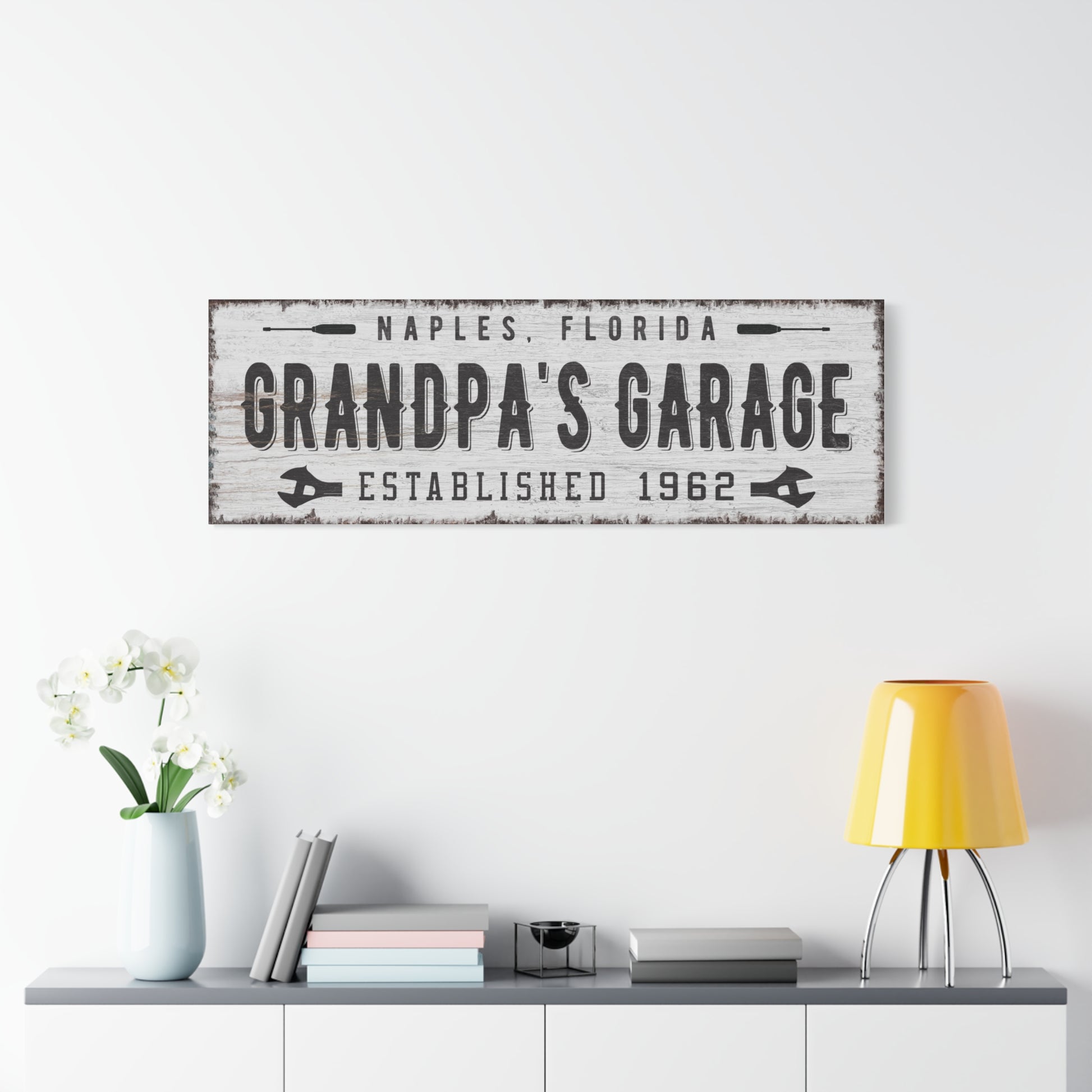 Custom Grandpa Garage Sign - Personalized Hand-Drawn Family Portrait, Unique Gift for Dad, Grandfather, or Grandpa - Custom Workshop Wall Art, Rustic Canvas Print, Birthday and Father's Day Gift from Grandkids