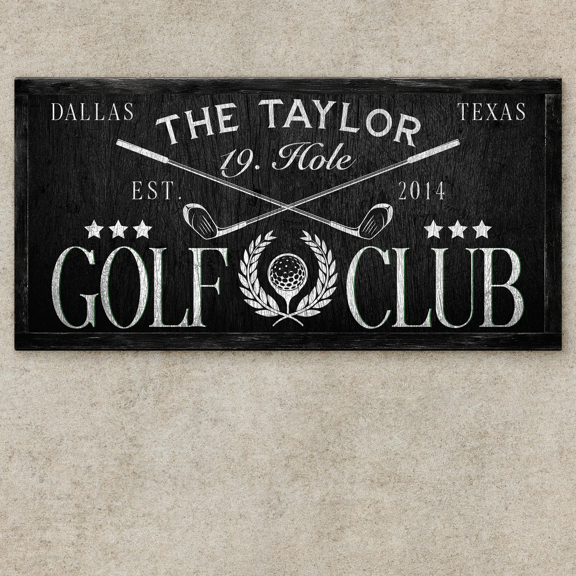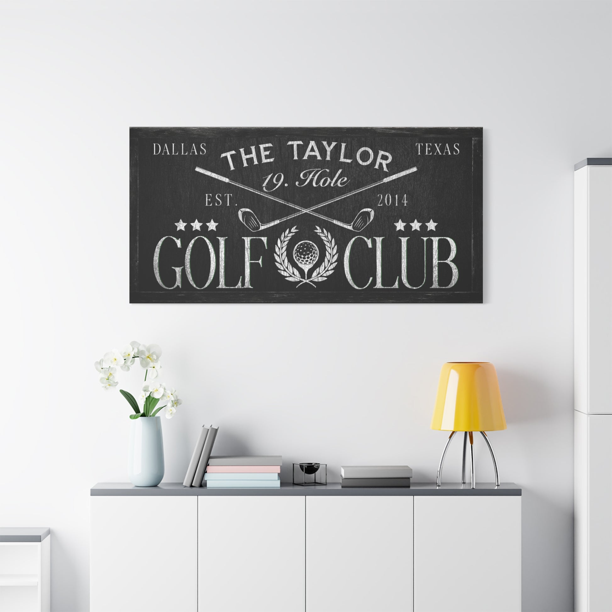 Personalized 19th Hole Golf Signs - Custom Golf Club Wall Art - Rustic Golf Lounge Decor - Modern Farmhouse Golfing Canvas for Man Cave, Bar, or Clubhouse