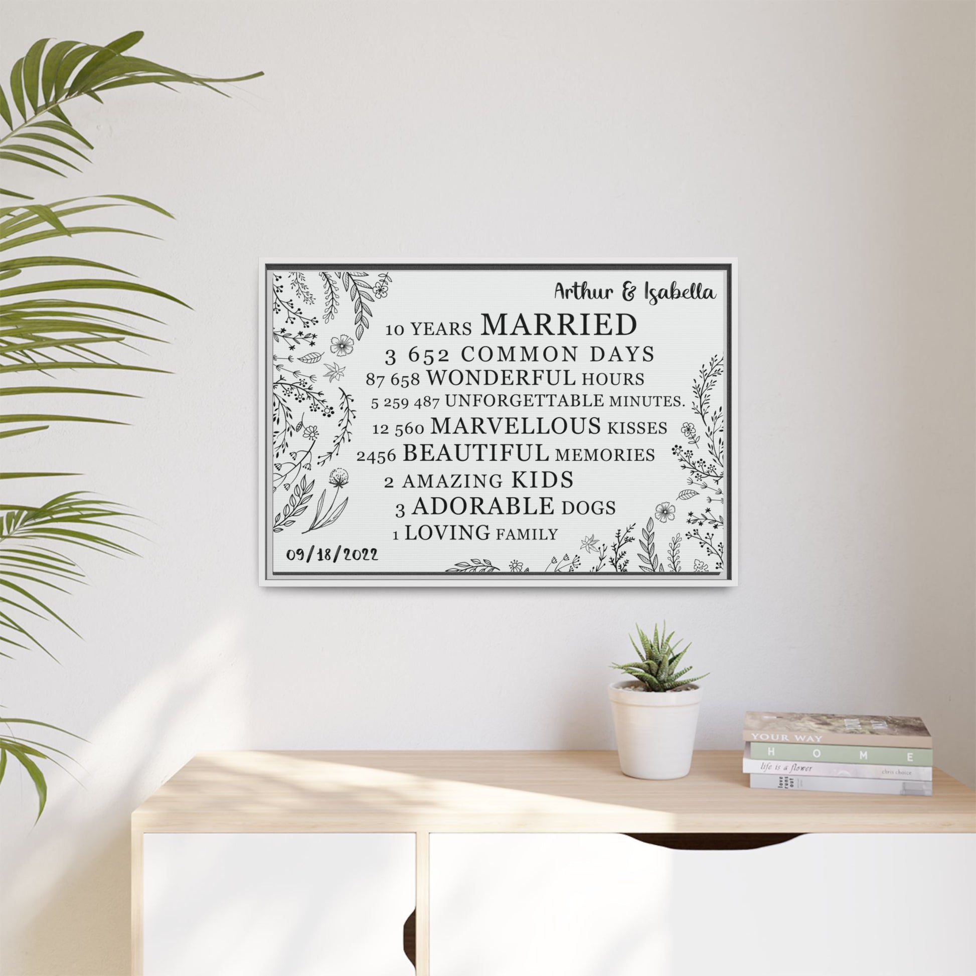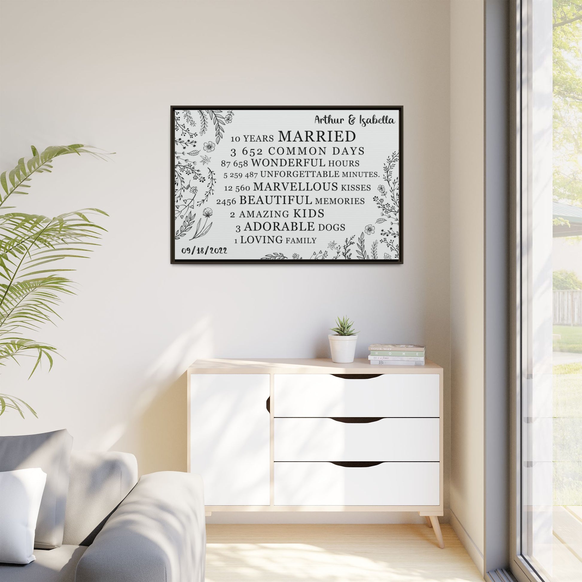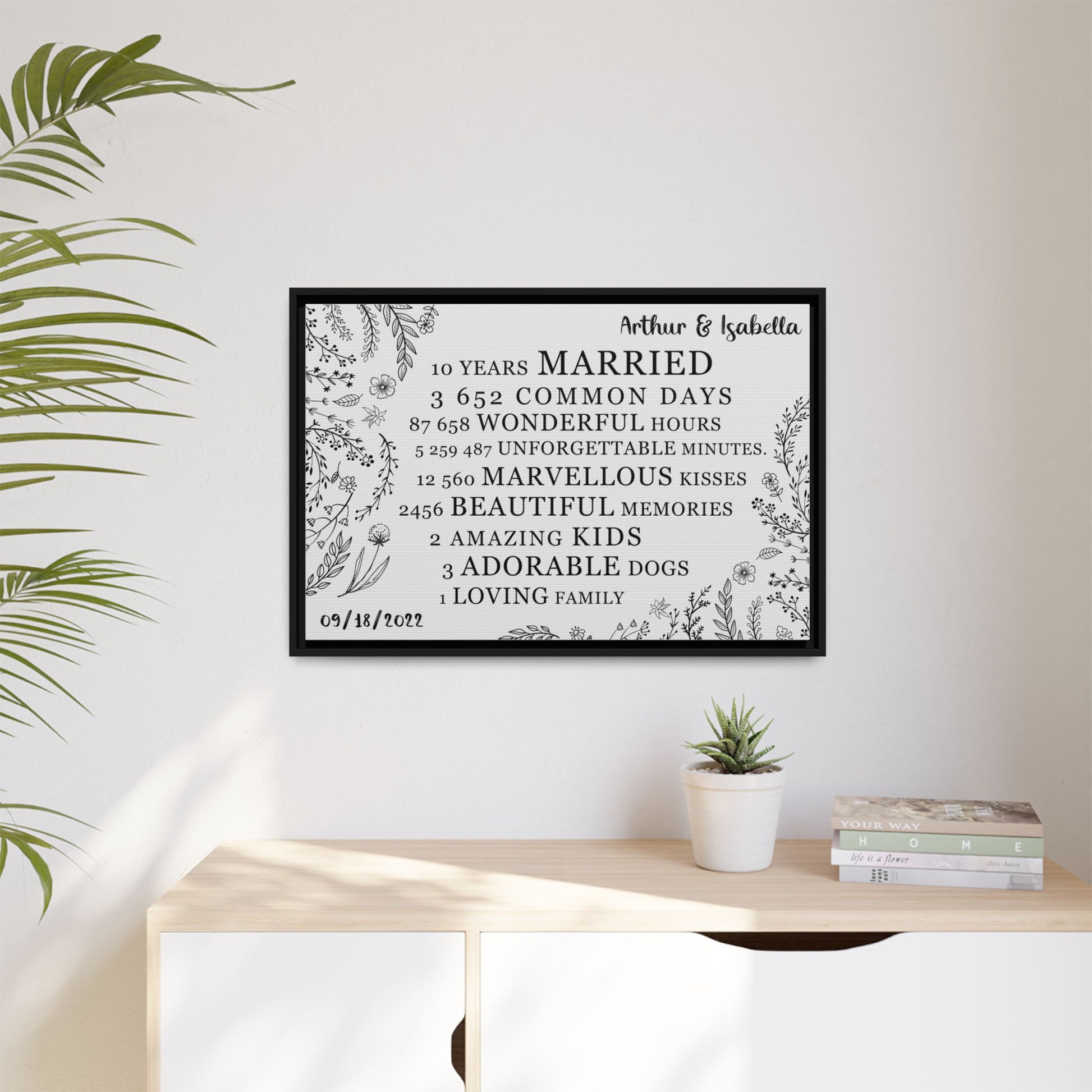 Personalized Anniversary Signs, Custom Year Number, Framed Poster & Stretched Canvas for Wedding & Anniversary Gifts – Custom Gifts for Husband, Wife, Parents, Couples, & More