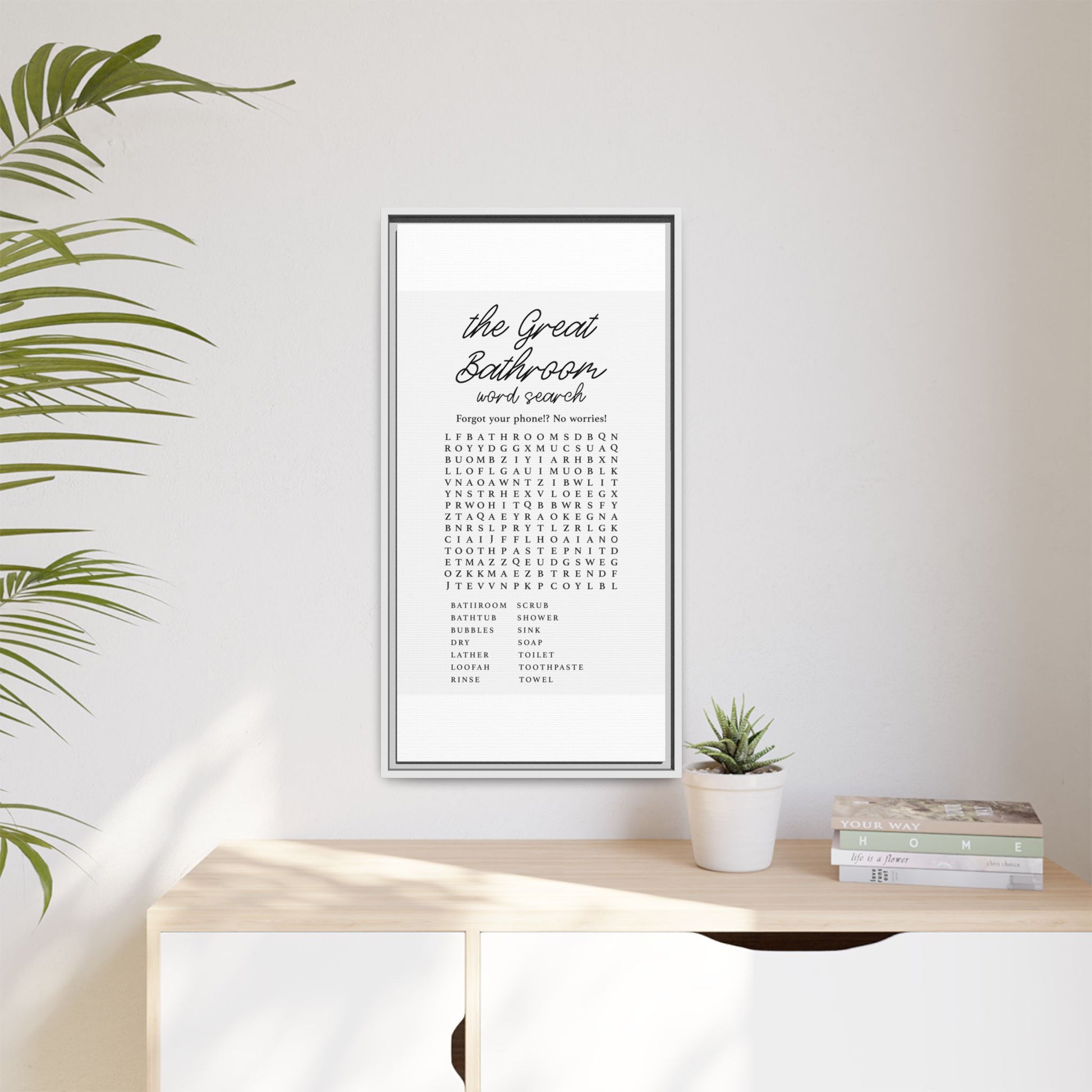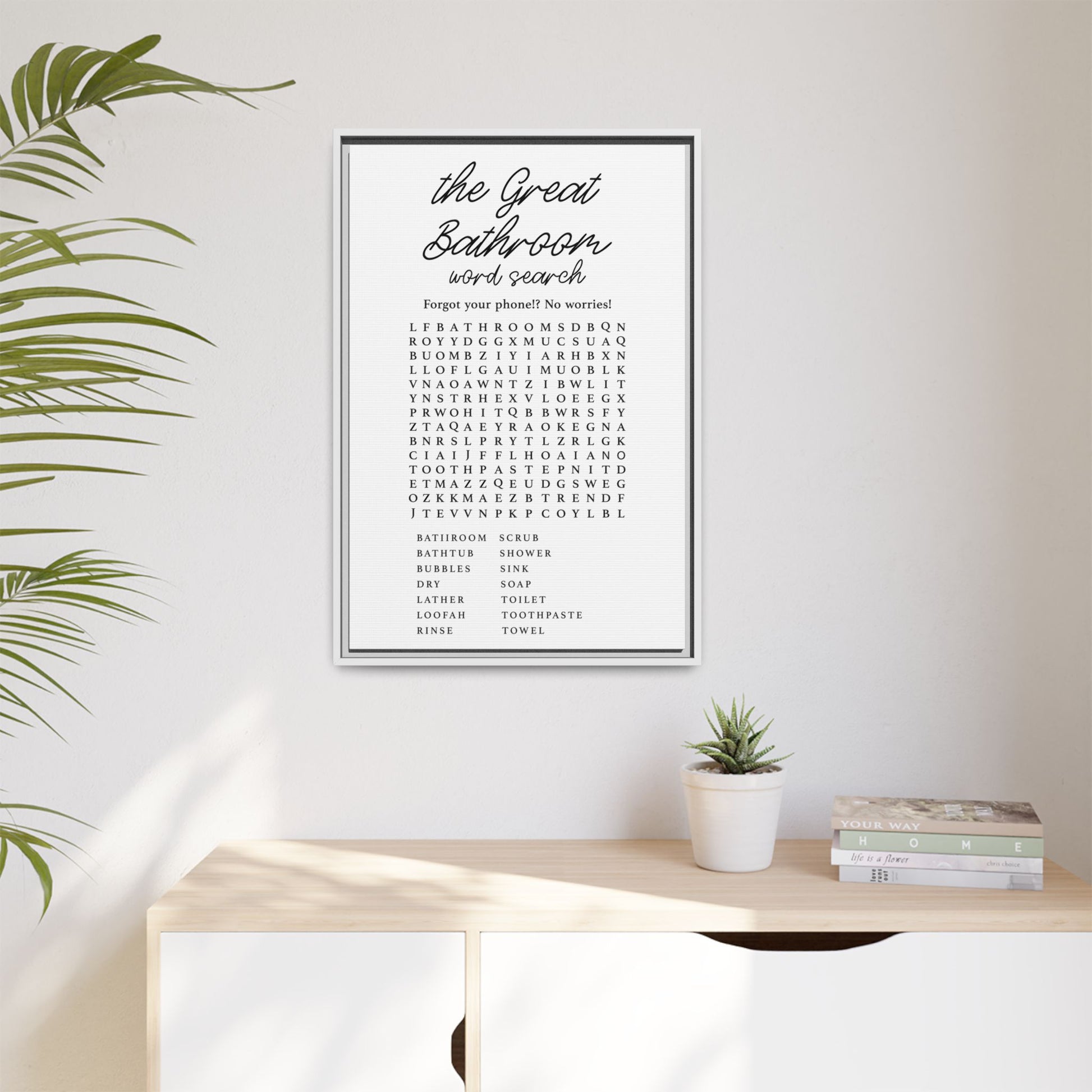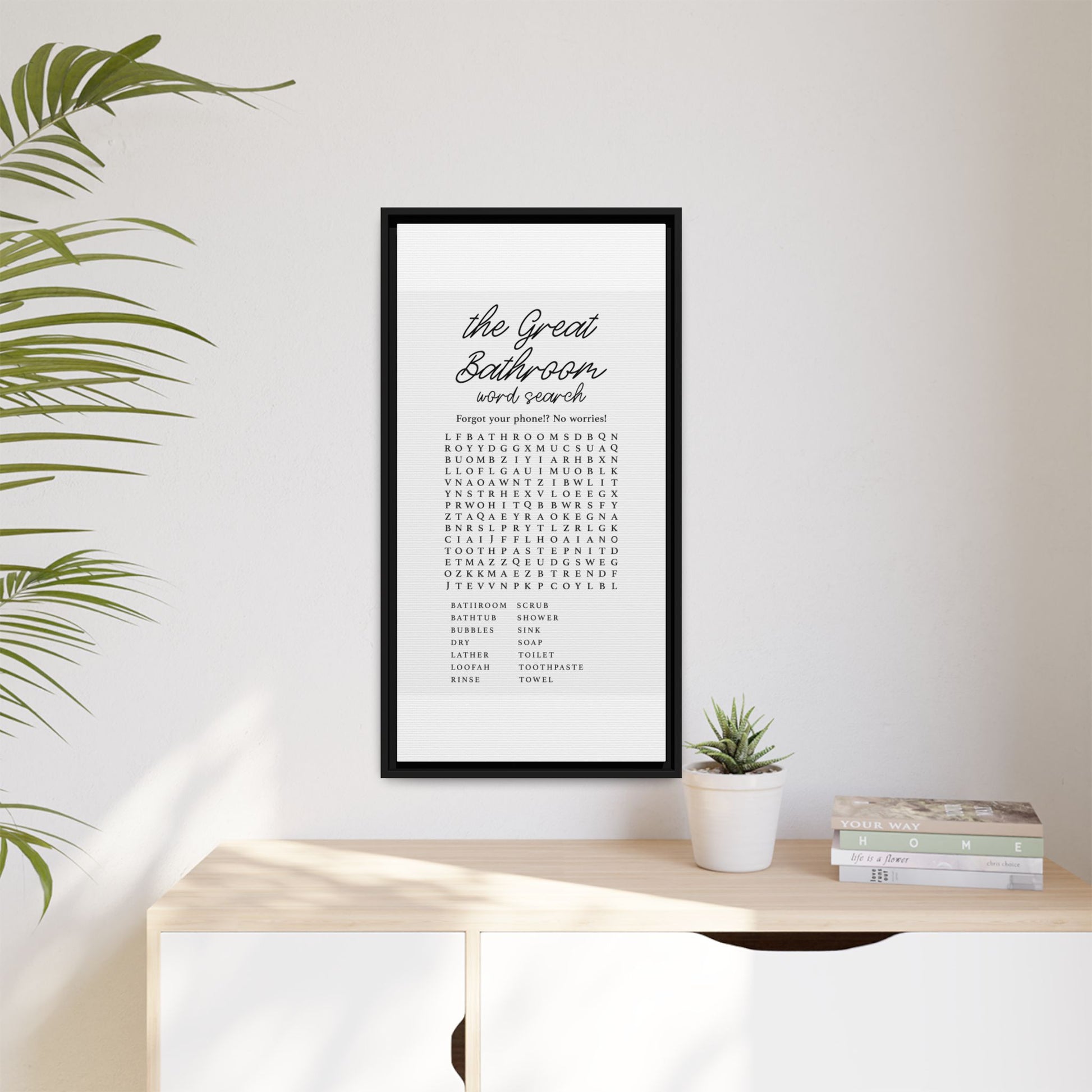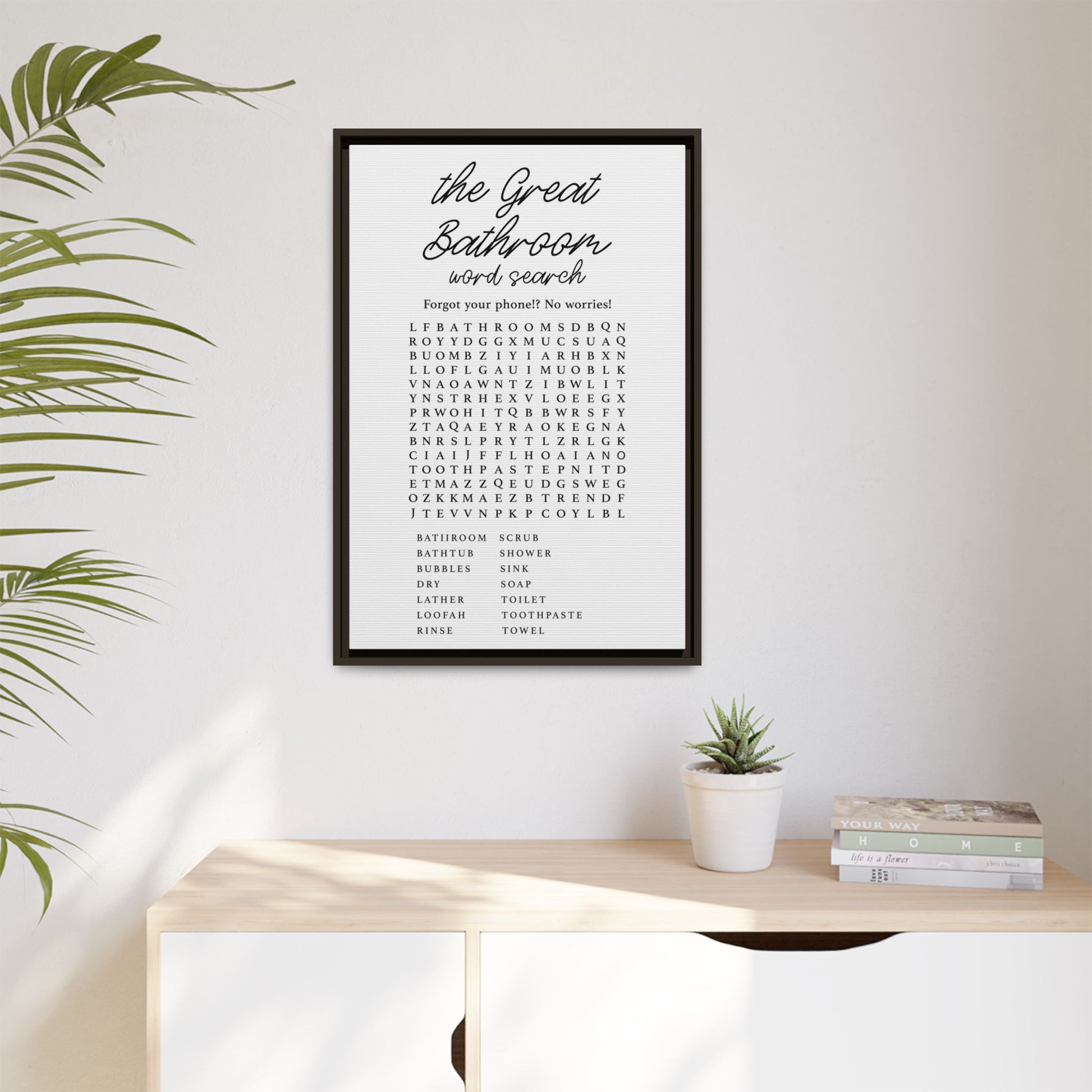 Personalized Bathroom Sign - Word Search Canvas Bath Wall Art - Custom Framed Bath Decor, Farmhouse Signs, Word Search Puzzle Print - Fun Sign