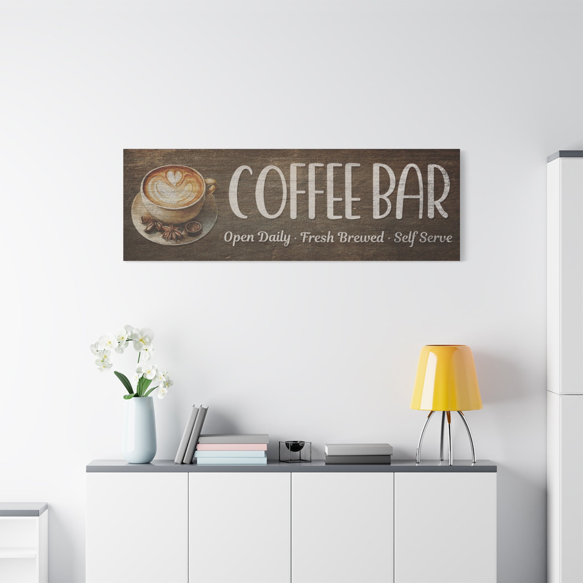 - Showcase personalized coffee bar signs, family names, or favorite café quotes.