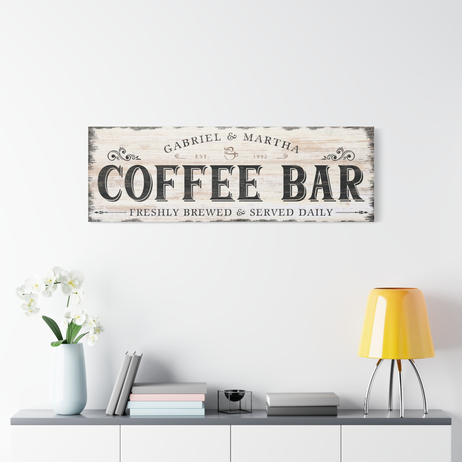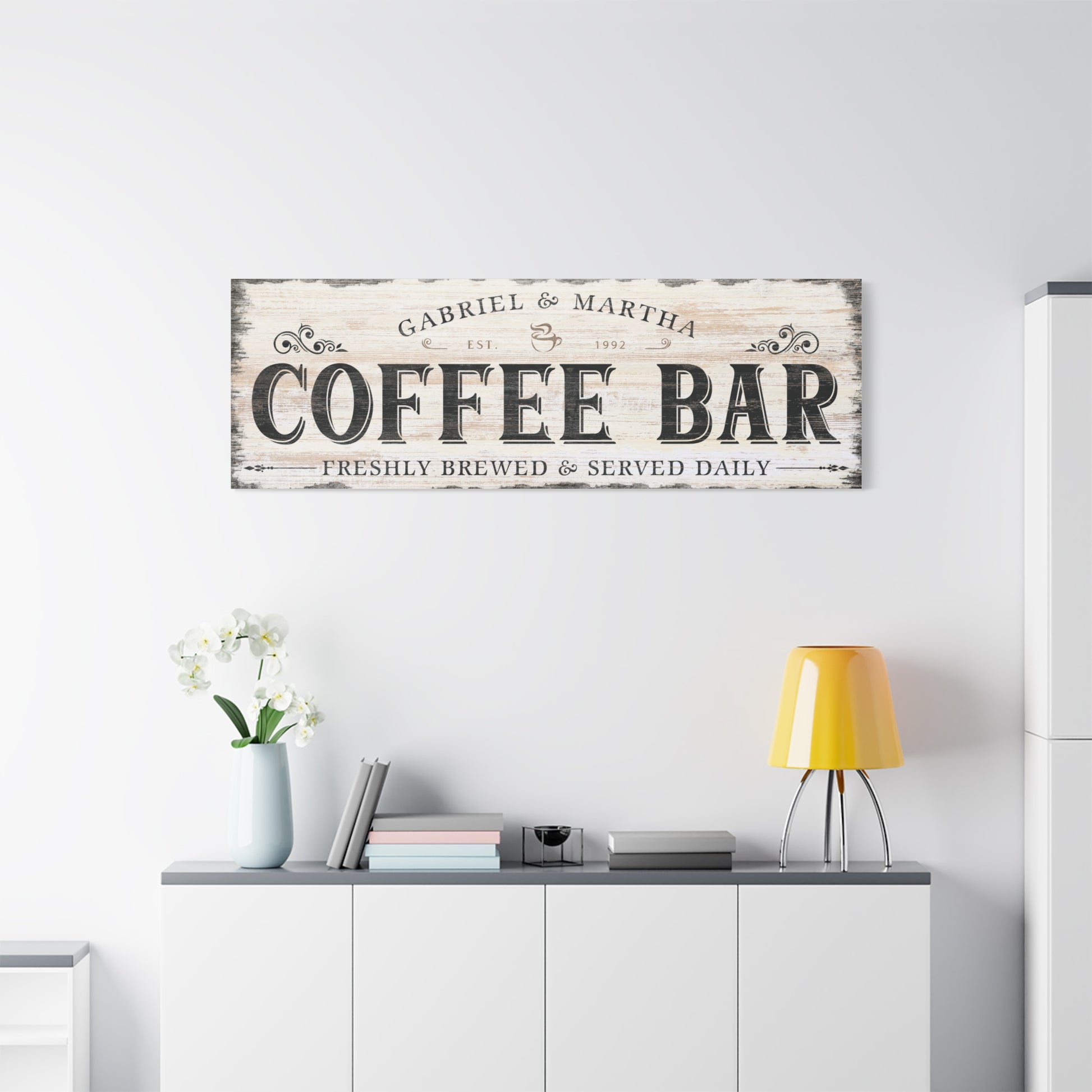 Personalized Coffee Bar Sign for Coffee Cart or Kitchen - Custom Coffee Canvas Wall Art - Modern Farmhouse Café Decor - Freshly Brewed Premium Coffee Sign