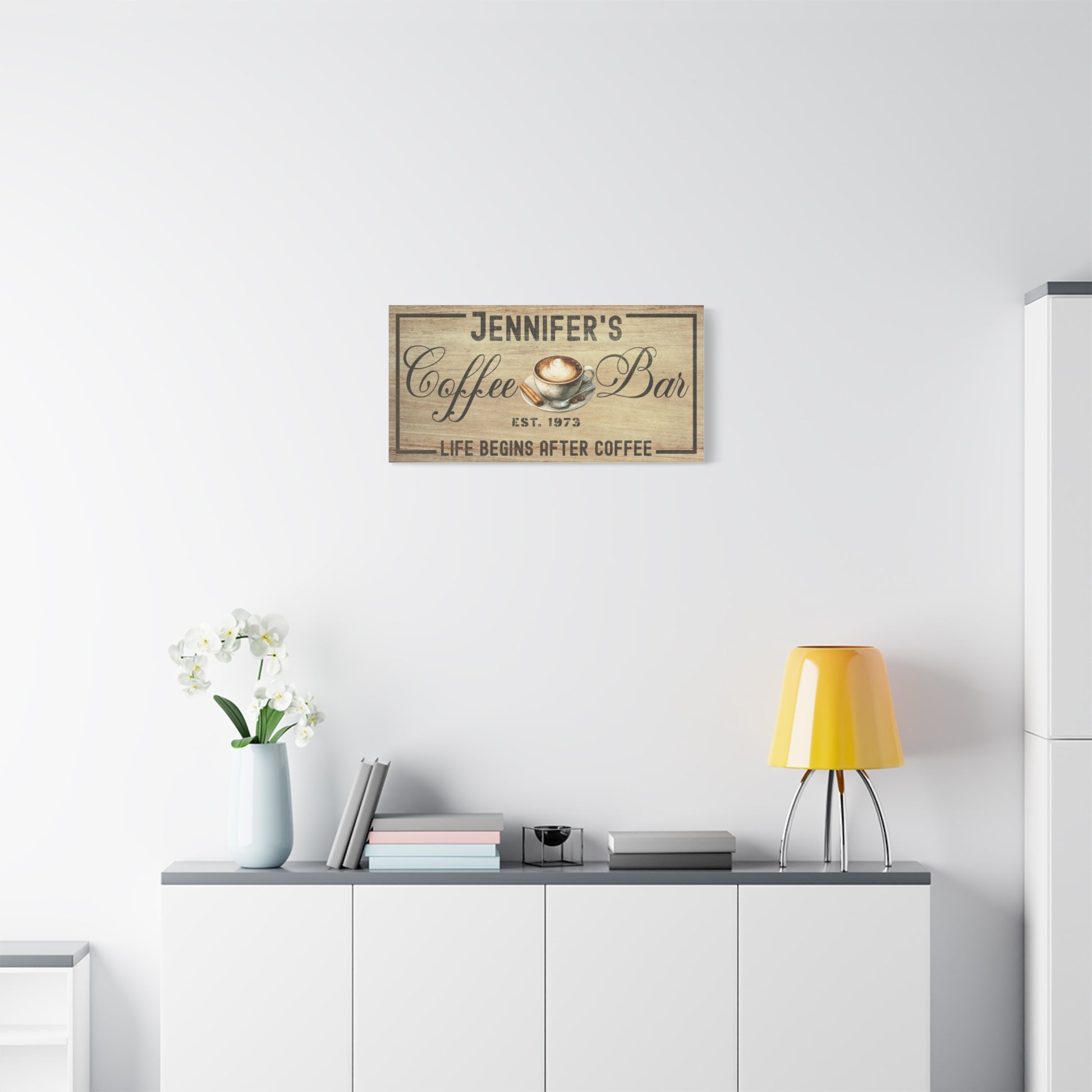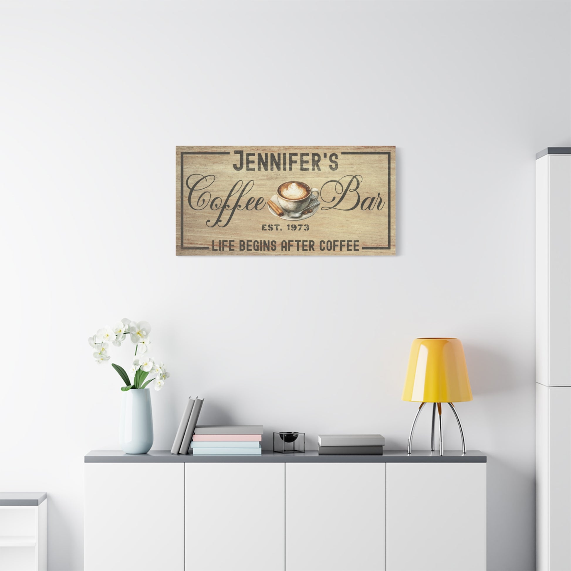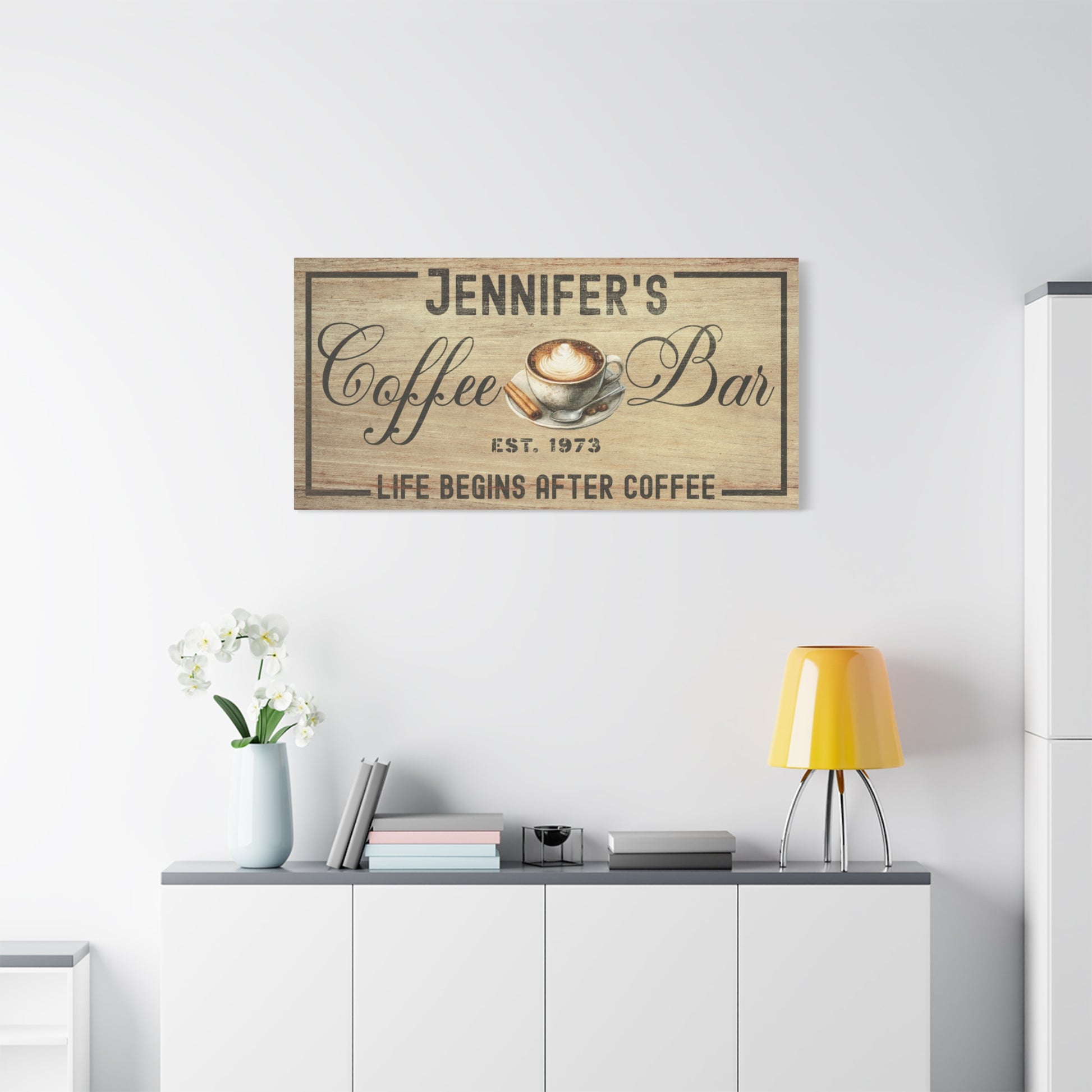Personalized Coffee Bar Sign - Custom Rustic Coffee Station Wall Art, Family Name Kitchen Canvas