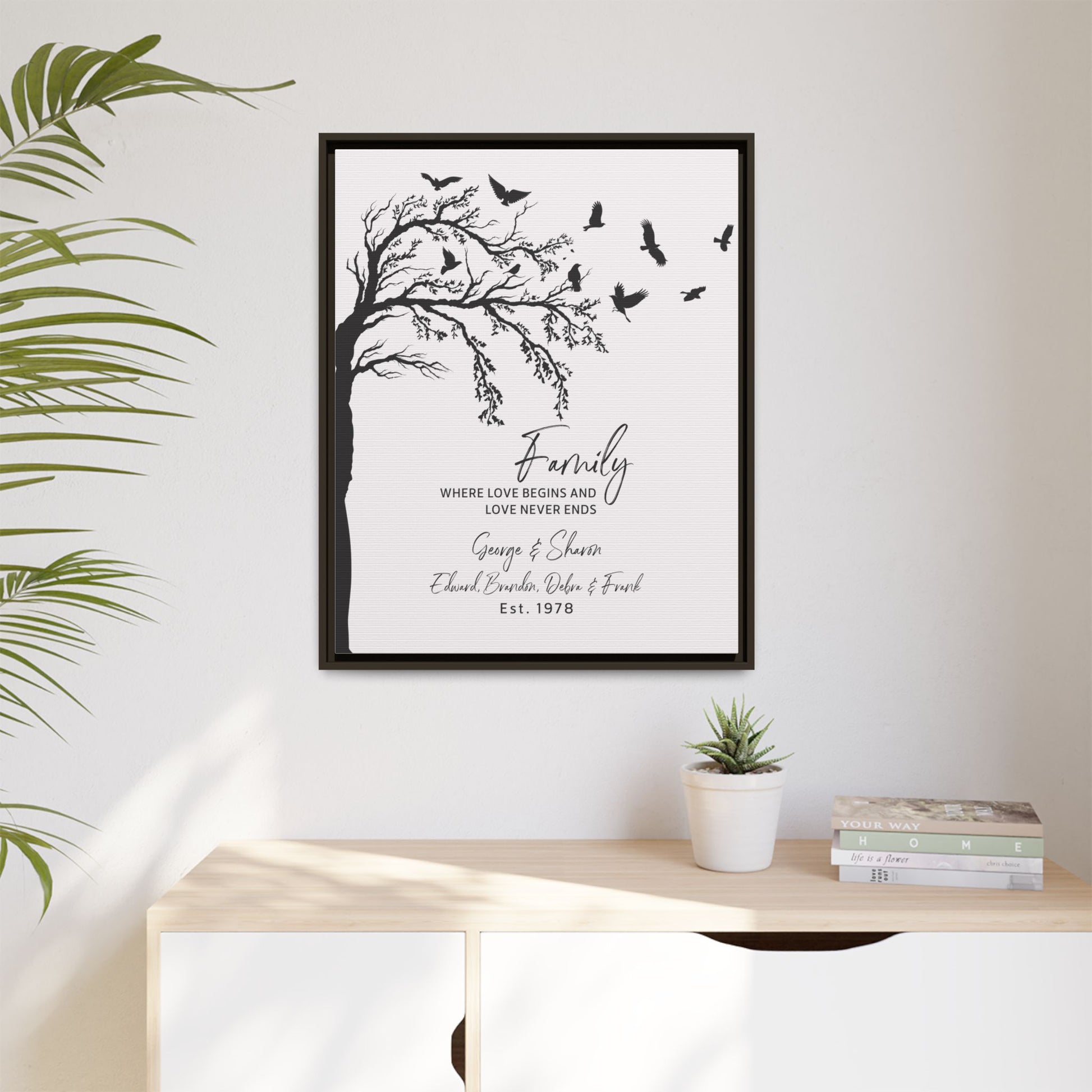 Personalized Family Tree Sign | Custom Family Tree Art | Grandchildren Family Tree Wall Decor | Anniversary Gift | Unique Family Tree with Birds Artwork