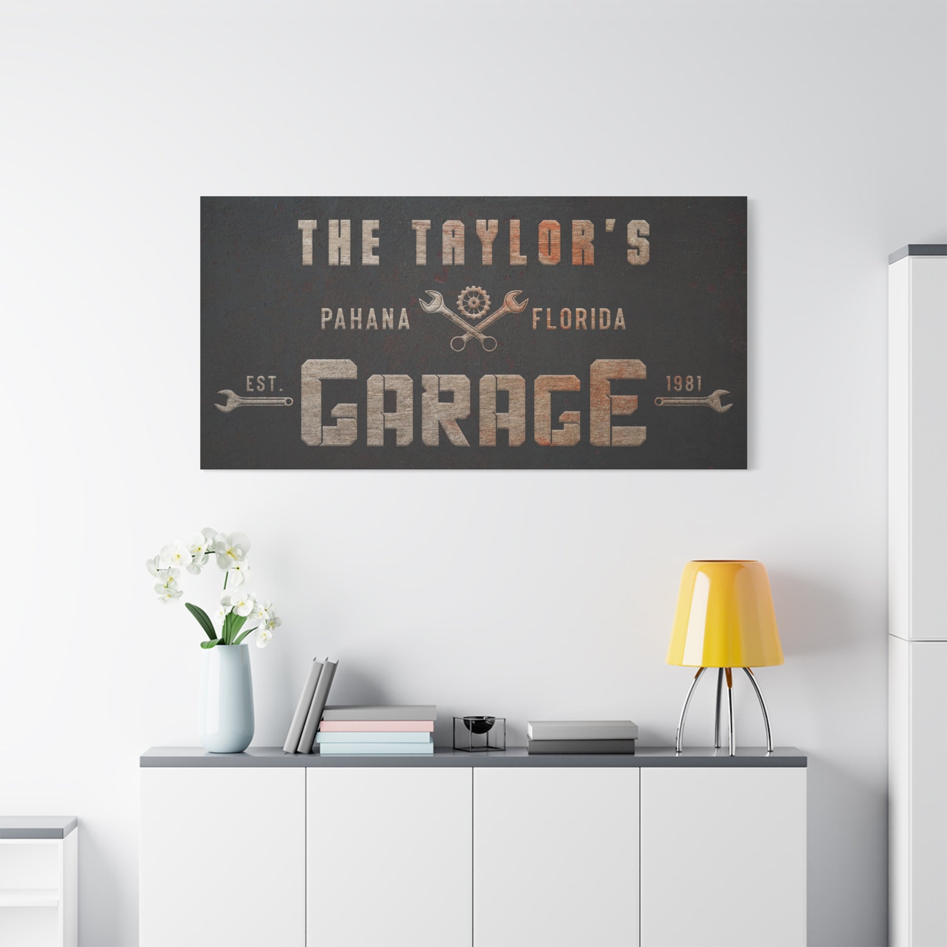 Personalized Garage Sign | Custom Workshop Wall Art & Rustic Garage Decor Canvas | Unique Garage Gifts for Him, Mechanic, and Man Cave