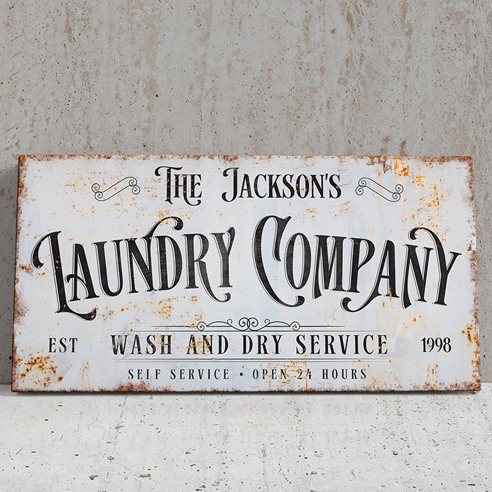 Personalized Laundry Room Sign - Service Sign, Custom Laundry Room Wall Decor, Rustic Vintage Signs, Wash Dry Fold Repeat, Laundry Room Art, Custom Gift Idea, Laundry Co Wall Art, Laundry Room Décor