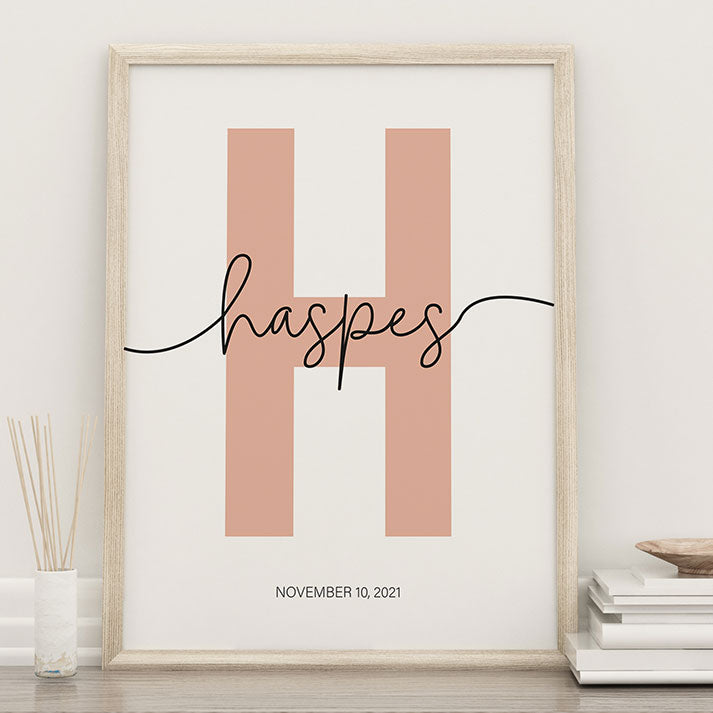 Personalized Monogrammed Wall Art - Initial Name Print, Custom Name Printable Nursery Wall Art, Baby Name Sign, Monogram Letter Print, Floral & Scalloped Birth Print for Baby Girl, Kids Room, Playroom