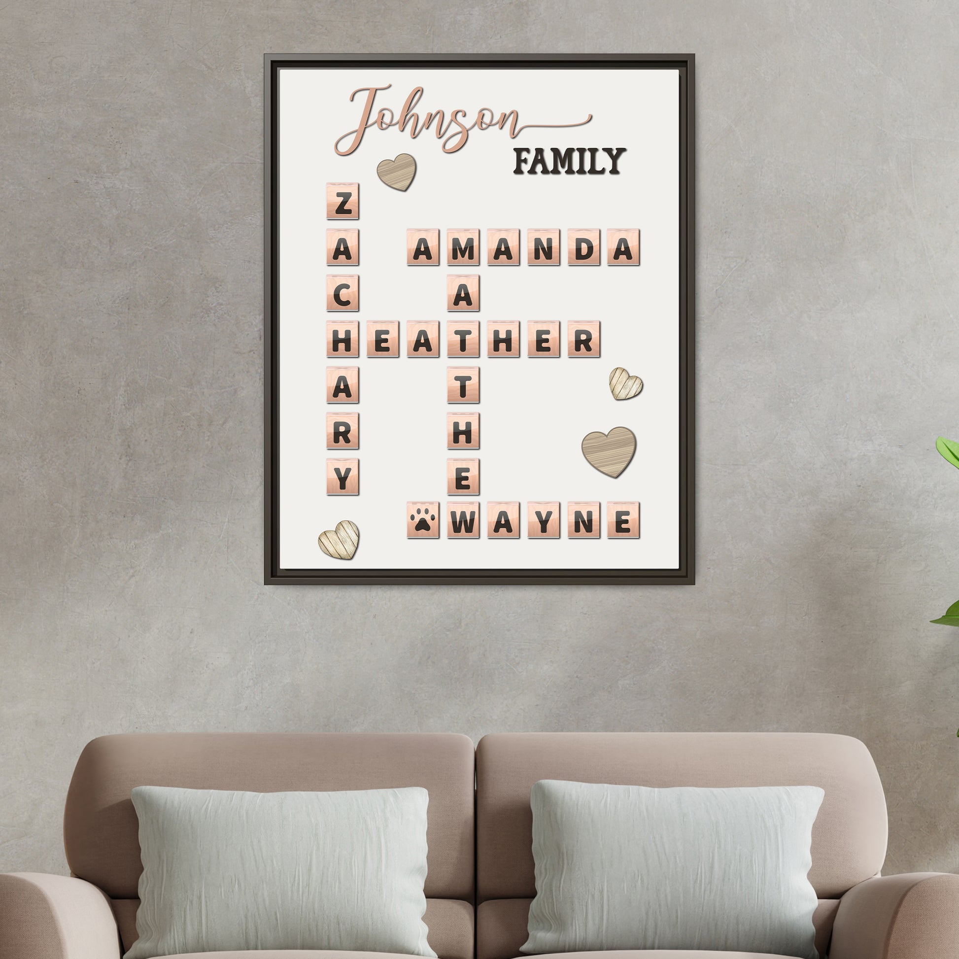 Personalized Scrabble Puzzle Family Name Signs - Custom Family Name & Grandkids Crossword Wooden Sign, Last Name Wall Art for Christmas, Weddings, Anniversaries