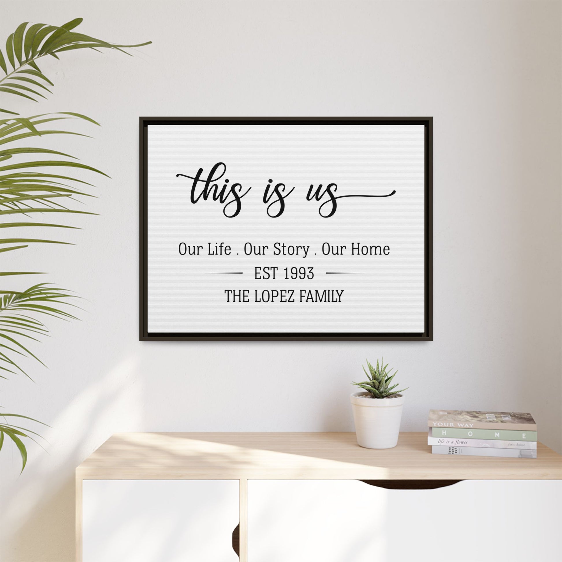 This Is Us Family Name Sign | Our Life Our Story Our Home Last Name Wall Art | Personalized Family Sign for Living Room, Above Couch Decor