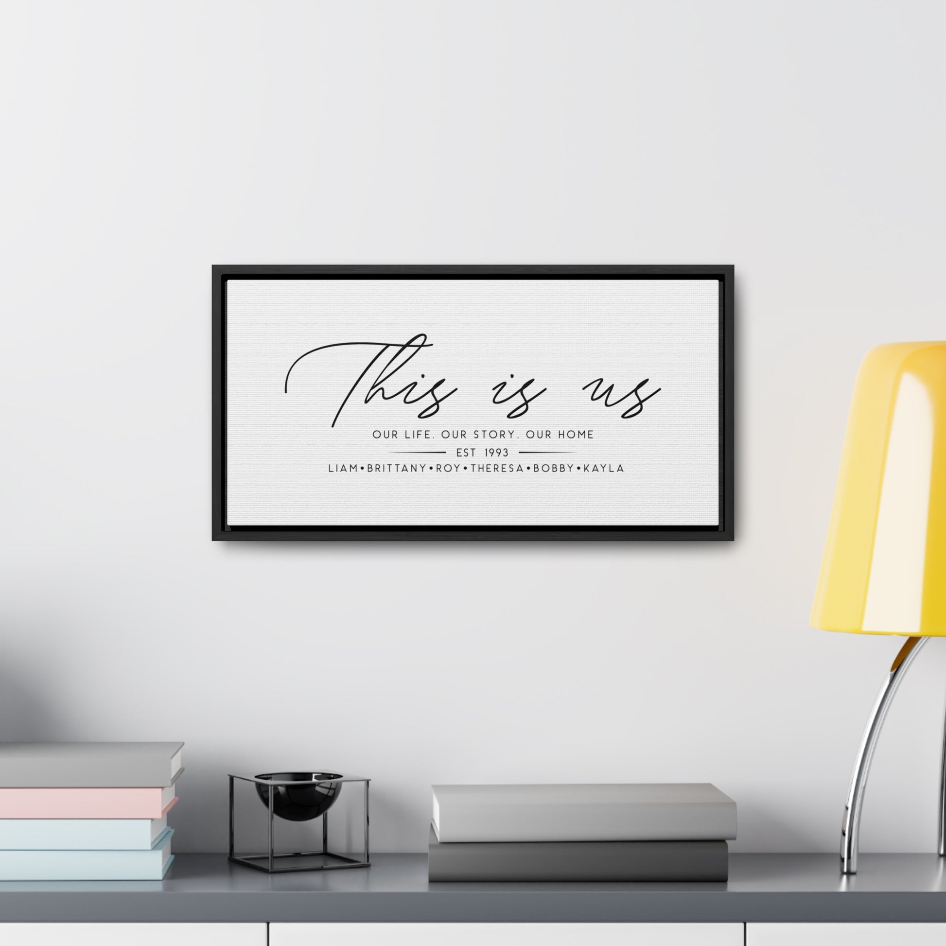 Celebrate the heart of your home with this Family Name Sign Canvas Sign that beautifully captures the essence of your story. The "This Is Us" Sign features the message "Our Life, Our Story,